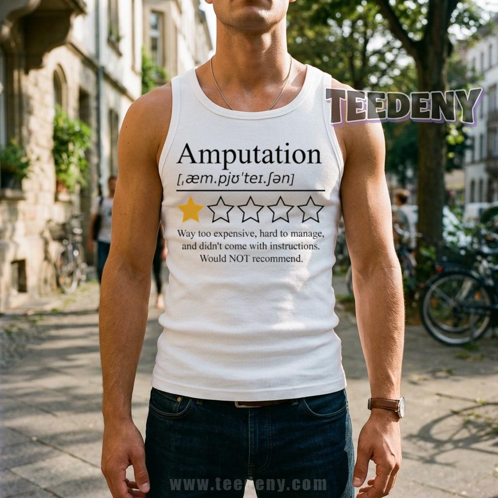 Adults who appreciate a good laugh will find the Humor Amputation T-Shirt to be an essential addition to their wardrobe. This shirt cleverly blends the serious theme of amputation with a witty twist, making it a standout piece for anyone who enjoys humor with a hint of irreverence. The Amputation One Star Way Too Expensive Hard To Manage Would Not Recommend Funny Shirt is designed for those who want to express their playful side while sparking conversations wherever they go.