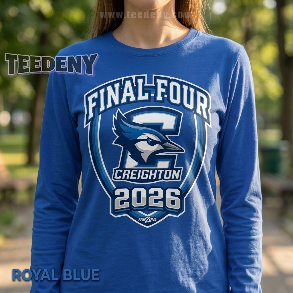 Basketball fans who bleed blue and white finally have a T-shirt that captures the spirit of their passion for their team. The Creighton Bluejays Final Four 2026 T-Shirt stands out as a spirited celebration of both the game and the pride of being a Bluejays supporter. This design is distinct for its vibrant homage to the NCAA Final Four, making it more than just a piece of clothing — it’s a badge of allegiance.
