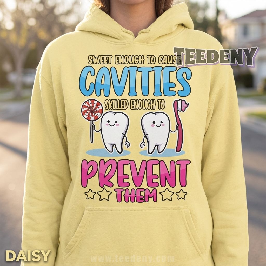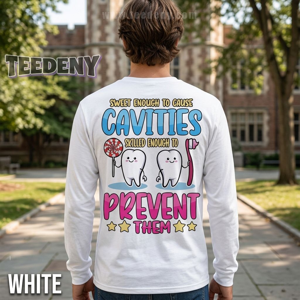 This shirt also makes a thoughtful gift for Dental Assistant Appreciation Week, graduation from dental school, or as a surprise for a coworker who loves spreading smiles every day. It is a cheerful reminder that preventing cavities is serious work, but it can still be done with heart and humor.