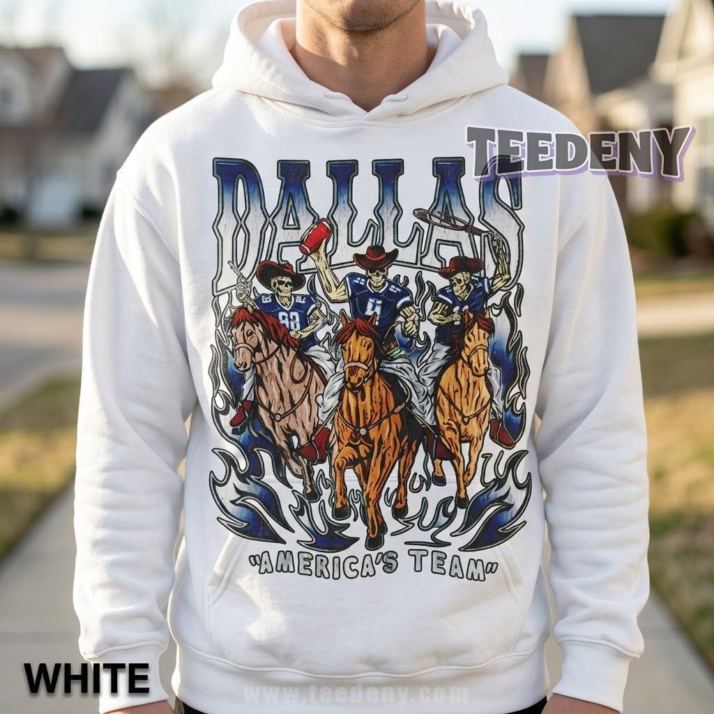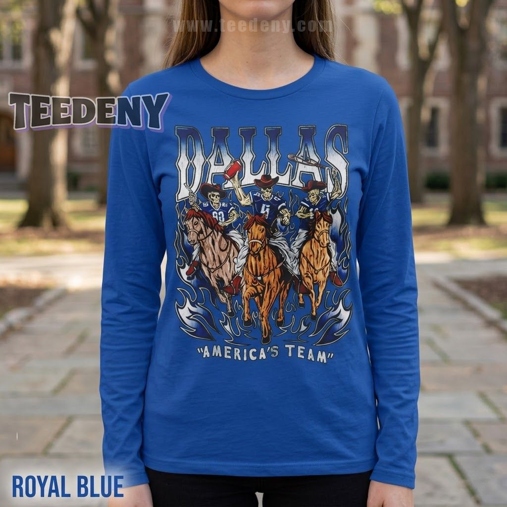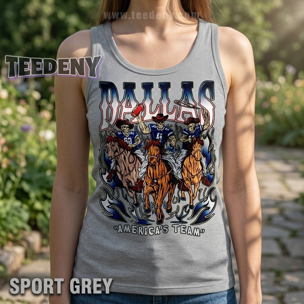 Dallas Cowboys enthusiasts who appreciate a unique twist on their game day gear will find the Dallas Cowboys Skeleton Shirt America’s Team to be a standout piece. This t-shirt artfully combines the beloved team spirit of the Cowboys with a bold skeleton theme, creating a striking design that doesn’t just show allegiance but makes a statement. It’s the perfect way to showcase your support while embracing a fun, edgy edge.
