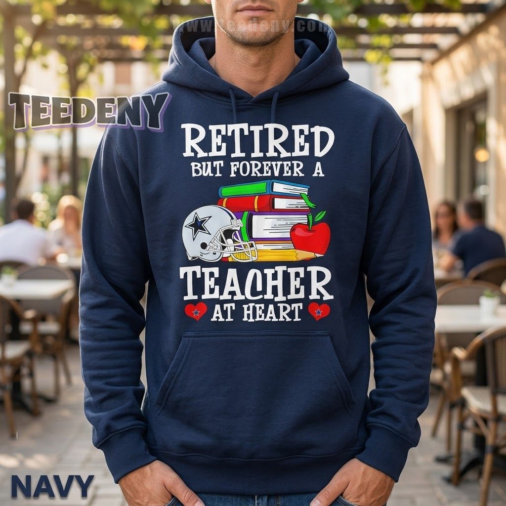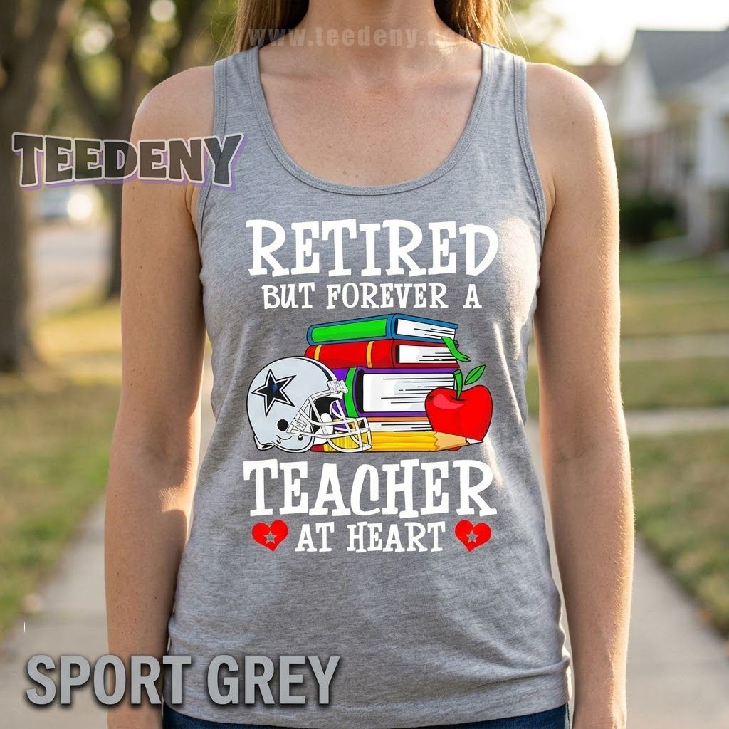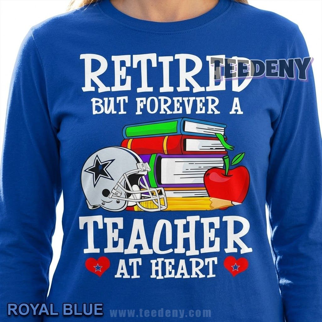 Retired teachers who cherish their time in the classroom will appreciate the heartfelt sentiment behind the Dallas Cowboys Teacher Shirt Retired But Forever A Teacher At Heart. This unique t-shirt seamlessly blends the pride of being a Dallas Cowboys fan with the profound identity of a teacher, making it a wonderful tribute to an unforgettable career. It beautifully resonates with those who have spent years shaping young minds while cheering for their beloved team.