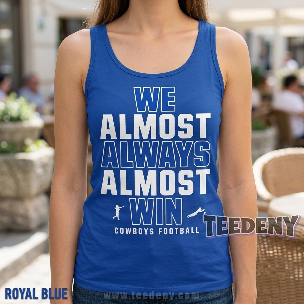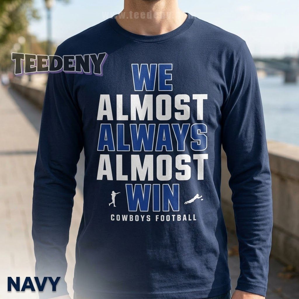 Dallas Cowboys enthusiasts who enjoy a bit of humor with their pride will love this comfortable tee that radiates devotion with a light-hearted twist. The “We Almost Always Almost Win” theme appeals to those who appreciate the joy of the game, even in its ups and downs. This shirt captures the spirit of camaraderie shared among fellow fans, making the We Almost Always Almost Win Dallas Cowboy T-Shirt a must-have for any casual wardrobe.
