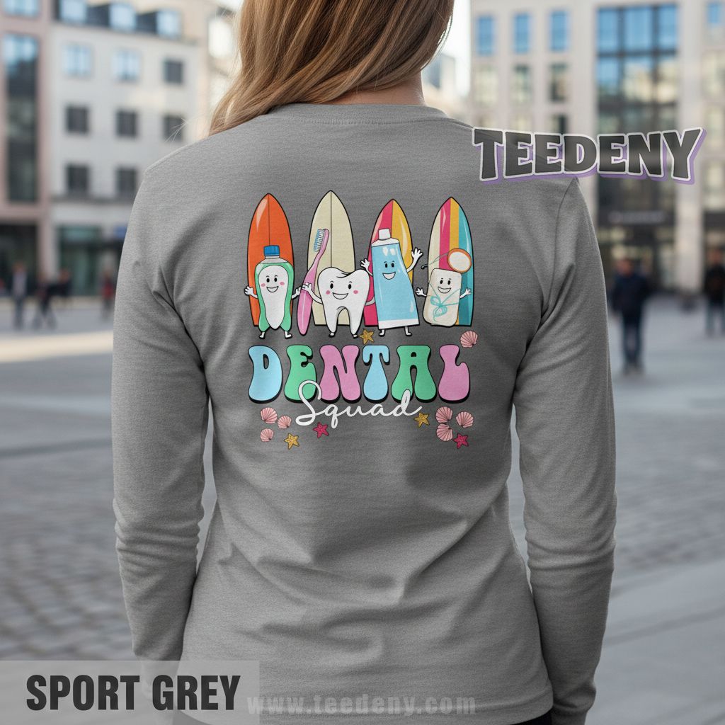 Compared to basic dental graphic shirts, this design feels more personal and seasonal. It highlights camaraderie and positivity, which makes it especially meaningful for group orders or coordinated office outfits. If you are planning a summer celebration or looking for a thoughtful appreciation gift for a dental coworker, this tee adds personality and warmth without trying too hard.