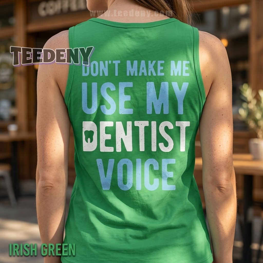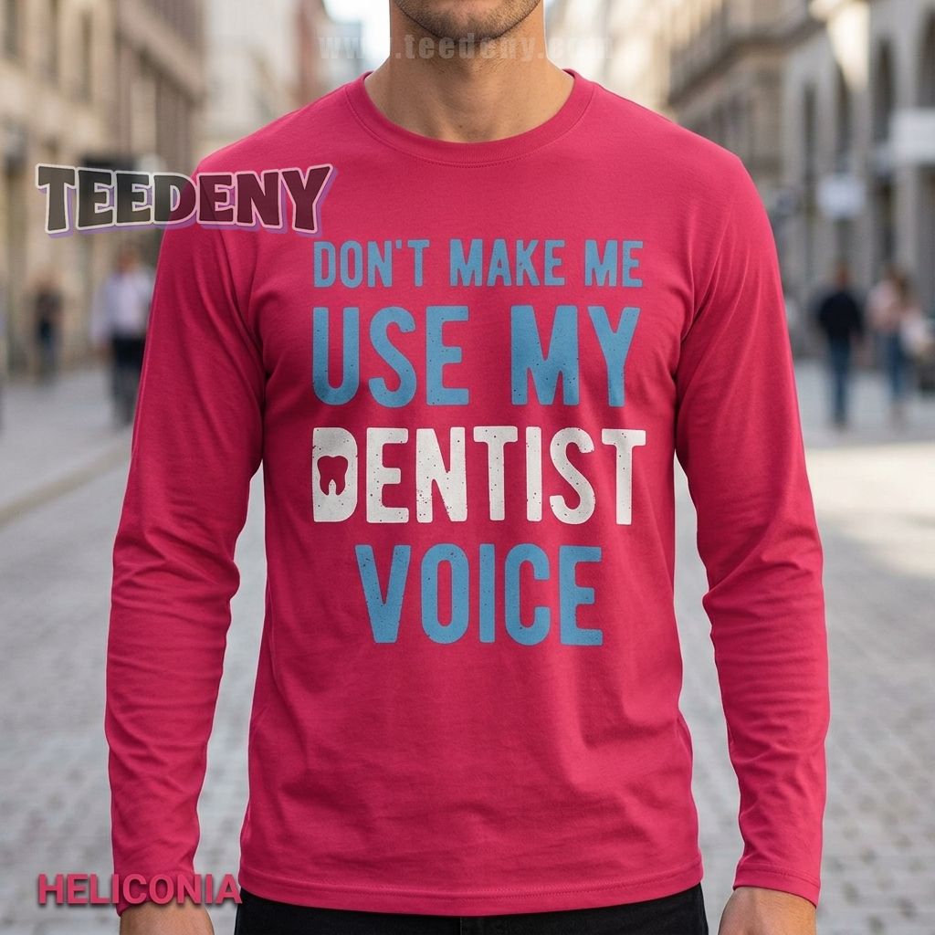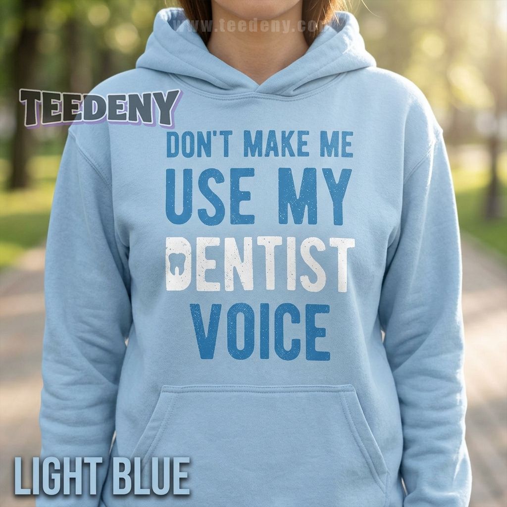 Humor meets professional pride in this Don’t Make Me Use My Dentist Voice Shirt, a playful dental graphic tee designed for those who know exactly what that “voice” sounds like. It is a lighthearted yet relatable piece of dentist apparel that captures the everyday reality of working in a dental office while keeping things fun and wearable.