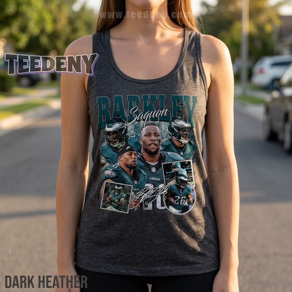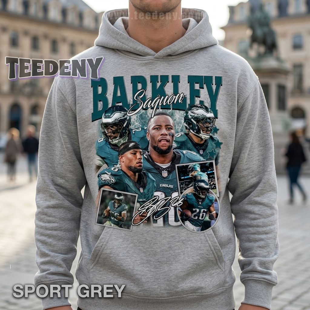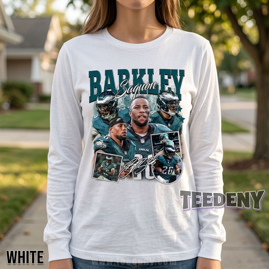 Philadelphia Eagles supporters who adore Saquon Barkley will find the perfect statement piece in this T-Shirt. Designed to embody team spirit and pride, the Eagles Saquon Barkley Shirt Philadelphia Apparel Team showcases your love for both football and one of its brightest stars. With its unique design centered around Barkley’s impressive legacy, this tee stands out in any crowd, making it a must-have for dedicated fans.