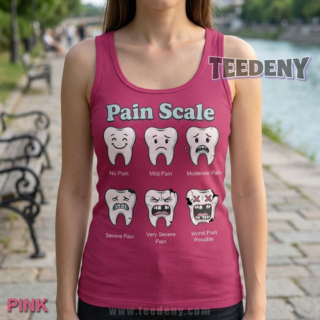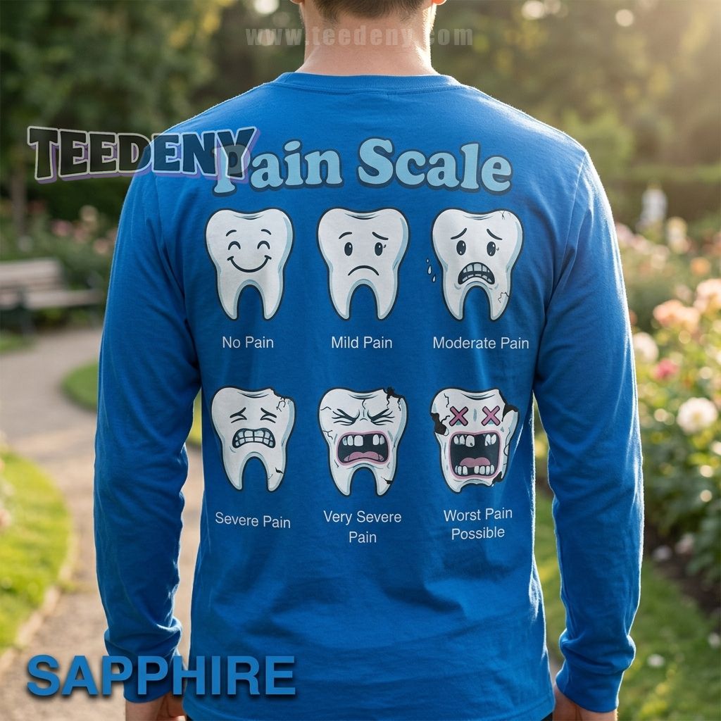 Humor meets everyday dental reality in this Funny Dental Pain Scale Shirt for Dentist and Dental Assistant. Designed with a playful tooth pain chart ranging from “No Pain” to “Worst Pain Possible,” this graphic tee captures a moment every dental professional knows too well. It is a lighthearted conversation starter that turns patient anxiety into something relatable and even a little fun.