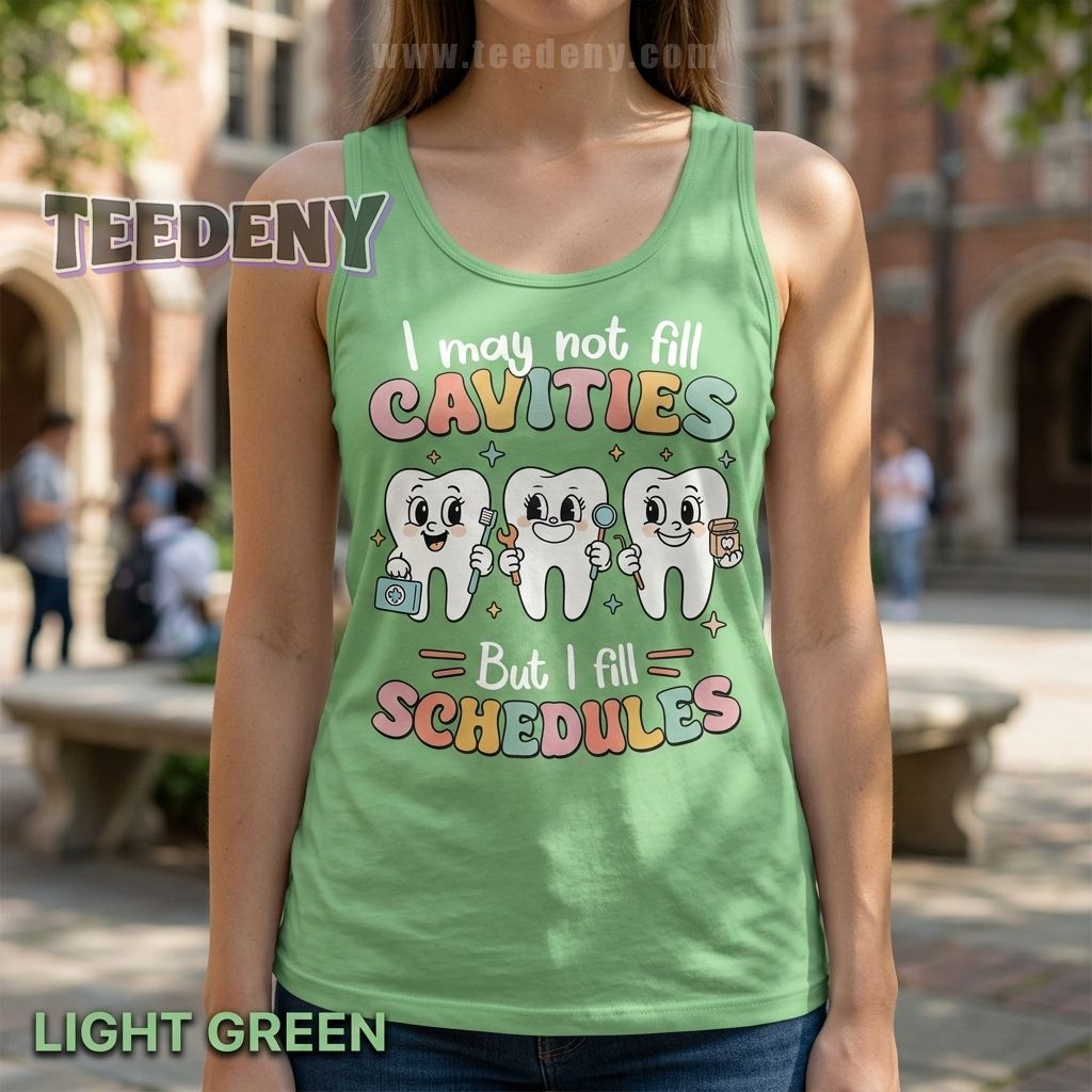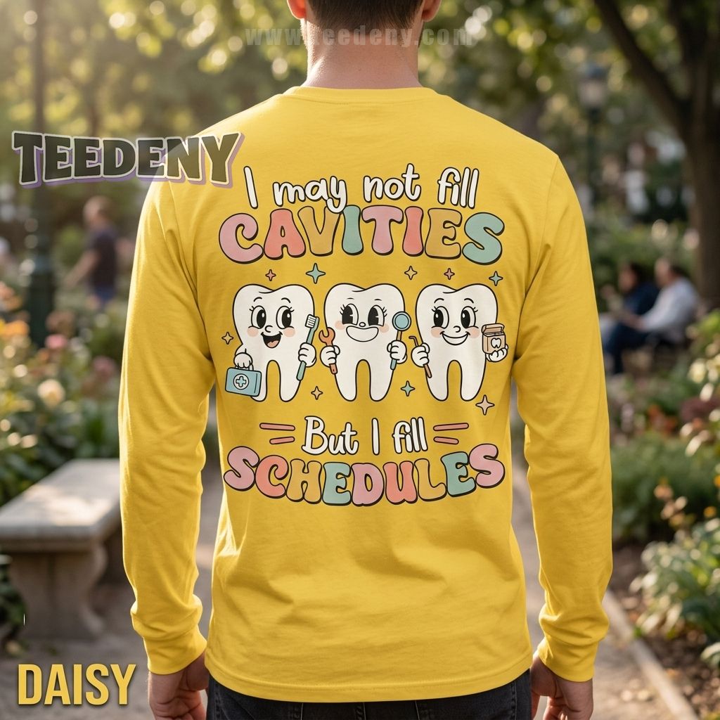 Front desk pros will instantly relate to this Funny Dental Receptionist Shirt I May Not Fill Cavities But I Fill Schedules, a playful tribute to the real MVPs of every dental office. While dentists handle drills and hygienists handle cleanings, receptionists keep the entire practice running smoothly. This design proudly celebrates the multitasking magic happening behind the front desk with cheerful tooth characters and a witty slogan that patients and coworkers will love.