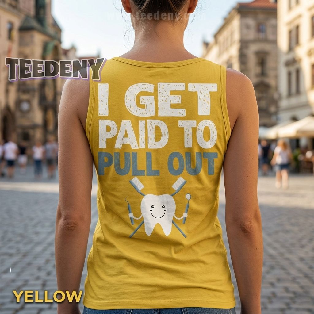 Some dental jokes never get old, and this I Get Paid To Pull Out Funny Dentist Shirt proves it. Designed for dental professionals who appreciate a clever double meaning, this tee turns everyday clinic humor into a wearable conversation starter. It is a lighthearted nod to the reality of extractions while keeping things playful and professional.