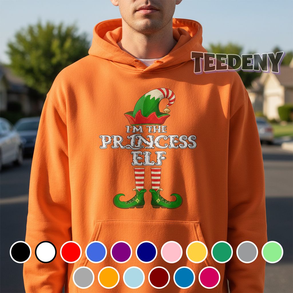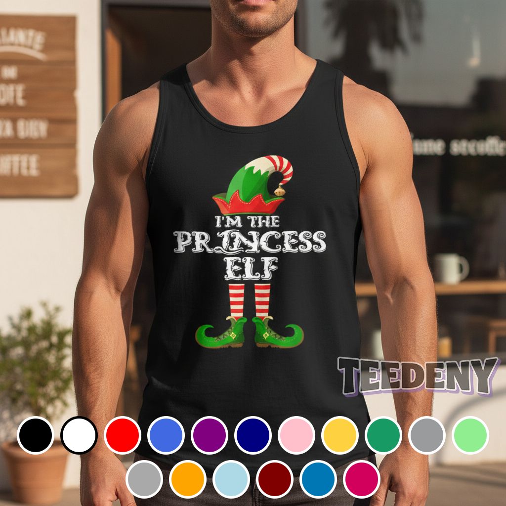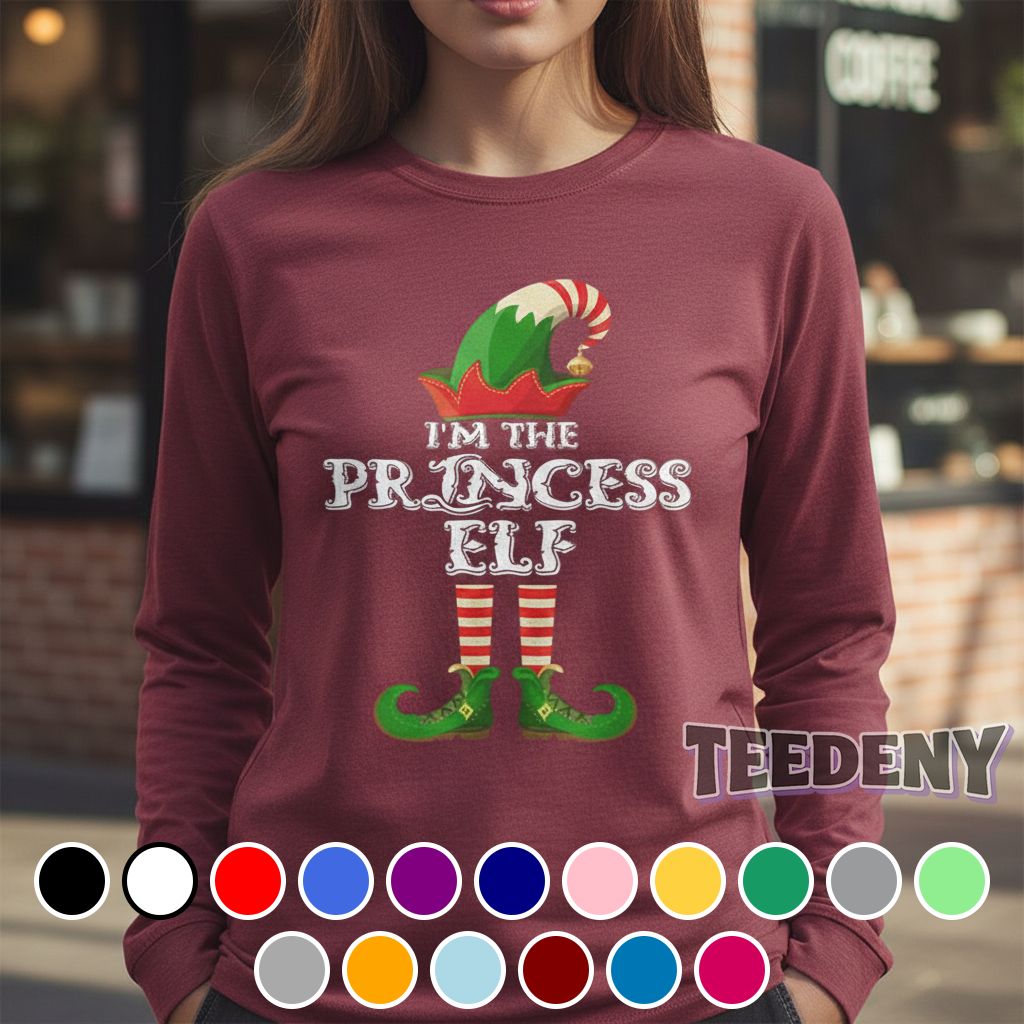 Adorning a classic T-shirt silhouette, this I’m The Princess Elf Christmas Shirt features whimsical graphics that instantly draw attention. The centerpiece design showcases a cheerful elf illustration, skillfully rendered with a vibrant palette of greens and reds, perfectly embodying the festive spirit. Bold, stylized typography dances around the graphics, enhancing the joyful message and creating an engaging visual focal point. Accentuated by light, sparkling accents, the interplay between the imagery and the soft background ensures that the design feels lively yet balanced, crafting an inviting and visually striking piece.