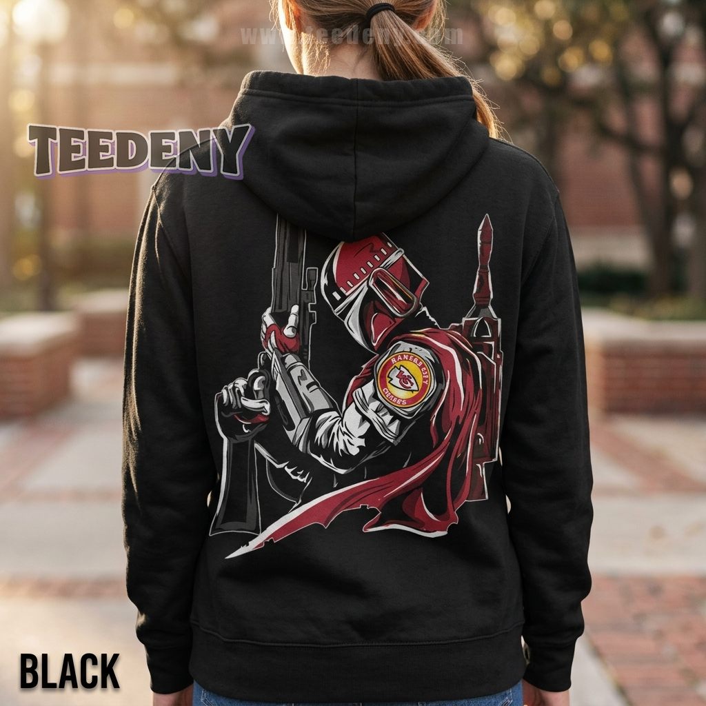 Are you ready to showcase your love for your favorite team in a fun and unique way? The Mandalorian KC Chiefs T-Shirt is specifically designed for Kansas City Chiefs fans who have a soft spot for the galaxy far, far away. This shirt combines the pride of being a Chiefs supporter with the adventurous spirit of The Mandalorian, creating a distinctive blend that celebrates both fandoms like never before.