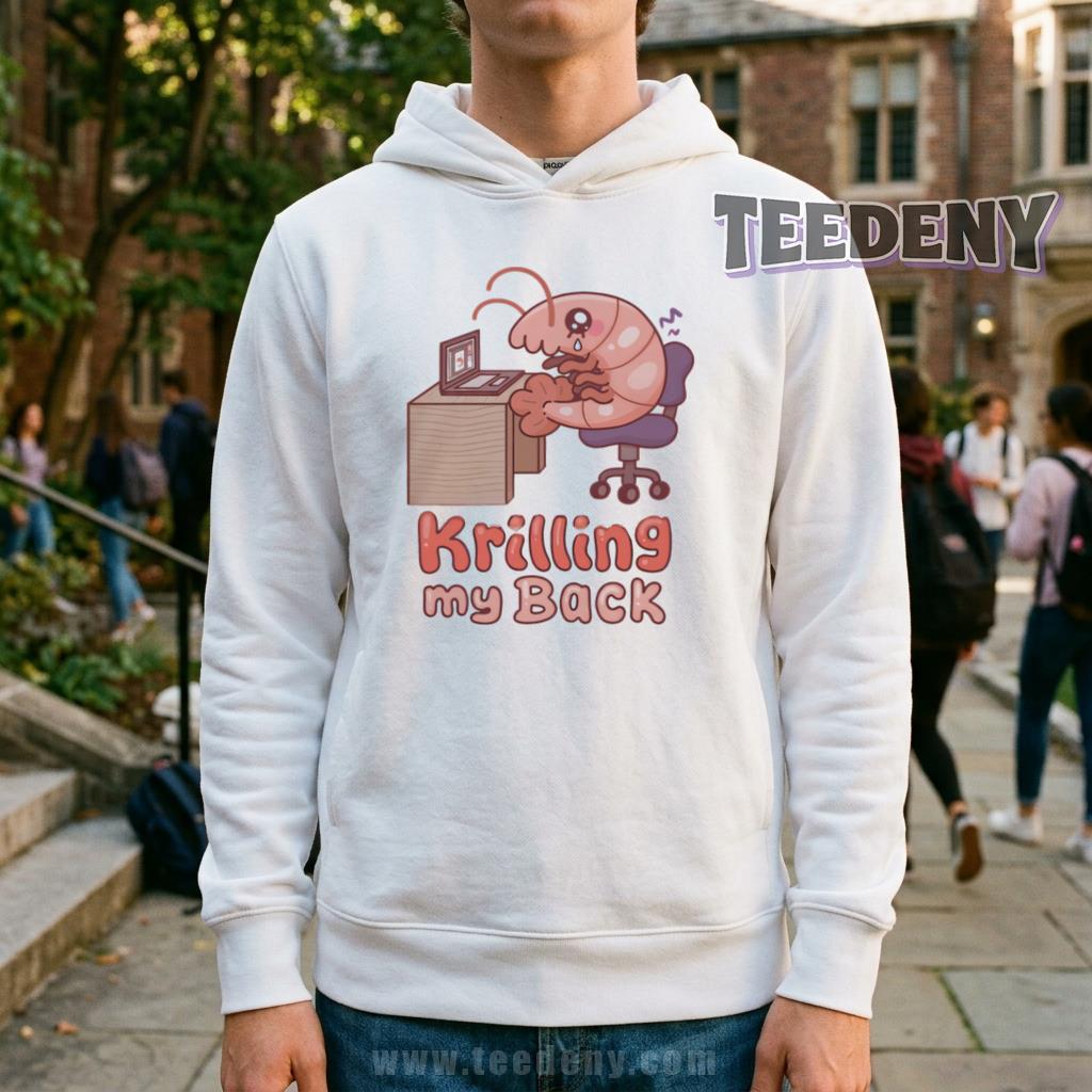 Office workers battling back pain will love the playful twist of the Krilling My Back Shirt. This standout T-Shirt perfectly marries humor with practicality, featuring a hilarious shrimp design that resonates deeply with the daily grind of working at a desk. It’s not just another shirt; it’s a light-hearted reminder that the strain of office life can be approached with a smile.