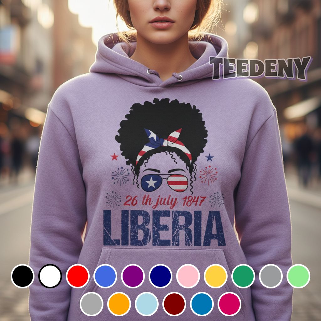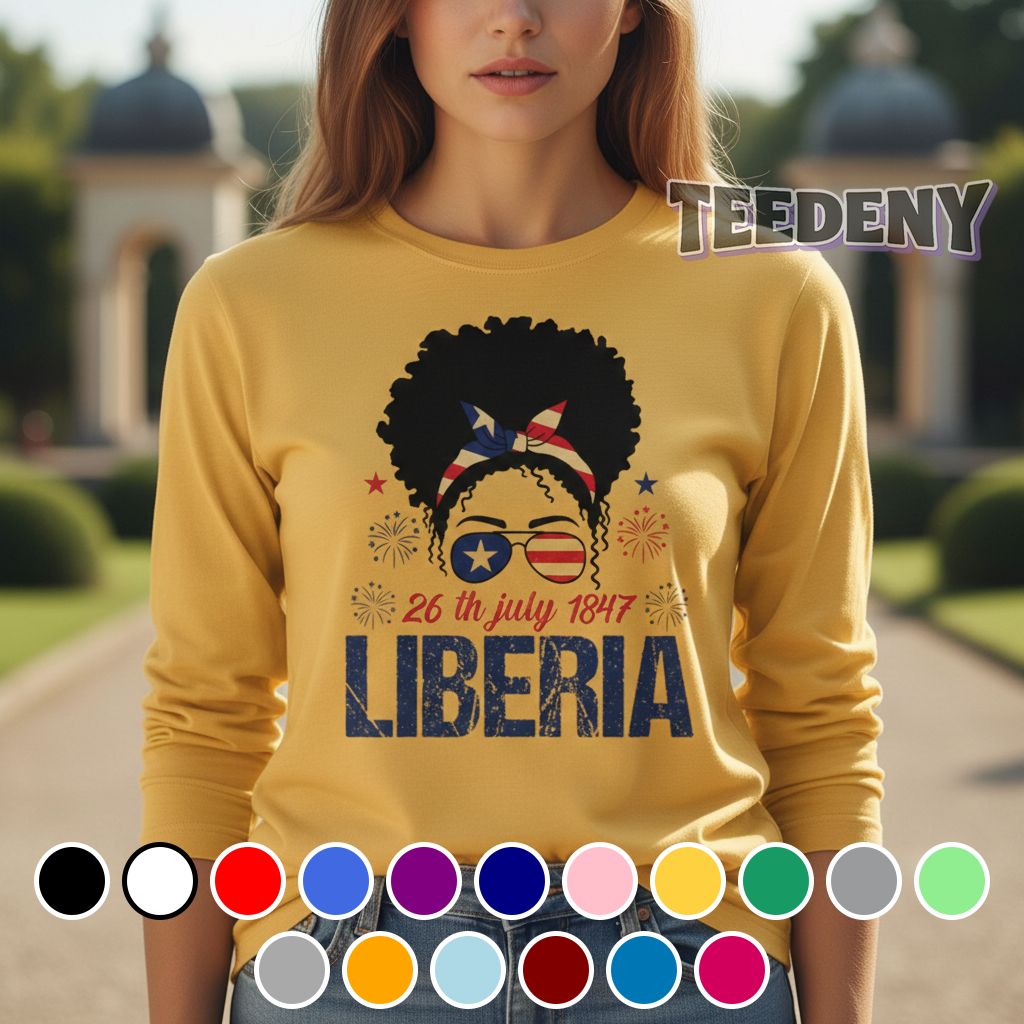 Showcased through a vibrant, eye-catching design, the Liberia Independence Day 26th July 1847 Afro Woman Shirt is an expressive statement piece that captures a rich cultural narrative. Featuring an intricately illustrated Afro woman at the center, the artwork is framed by bold, contrasting colors such as deep greens, radiant yellows, and warm browns that beautifully complement the canvas of the shirt. Graphic elements and stylized text are carefully arranged to create a harmonious flow, ensuring the visuals leap off the fabric, inviting admiration and intrigue. The balanced design is ideal for full-coverage aesthetics, allowing the artwork to be appreciated from every angle.