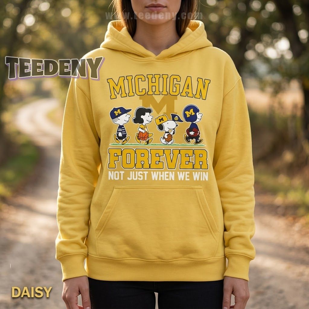 For those who cherish the blend of childhood nostalgia and team spirit, the Michigan Wolverines Forever Fan Peanuts Characters Win Or Lose Vintage T-Shirt is a must-have. Fans of Michigan Wolverines and Peanuts enthusiasts will find this shirt uniquely distinctive, as it harmoniously unites the lovable Peanuts characters with a celebration of Wolverines pride. Designed for those who not only enjoy the game but also cherish the whimsical spirit of Peanuts, this shirt promises to turn heads and spark conversations.