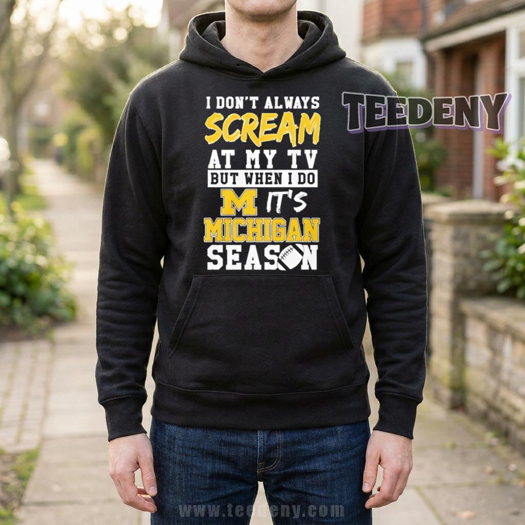 Michigan Wolverines enthusiasts who thrive on the excitement of game days finally have a T-shirt that expresses their passion for the sport. The Michigan Wolverines I Don’t Always Scream At My TV But When I Do It’s Michigan Season Shirt perfectly captures the vibrant spirit of being a dedicated fan, showcasing a humorous connection between being a passionate supporter and the thrill of Michigan season, making it a standout choice in any fan’s closet.