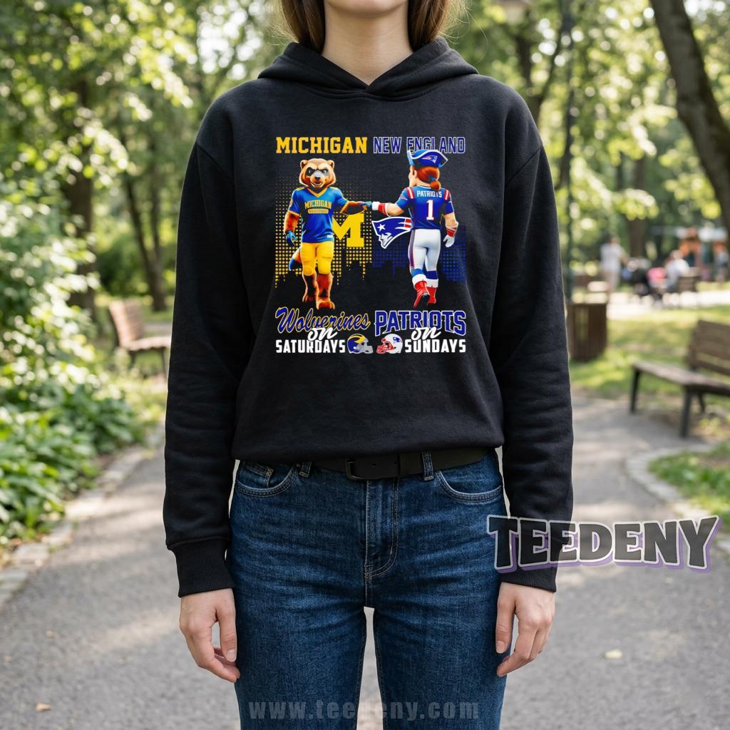 Sports fans who proudly support two beloved teams now have an essential addition to their wardrobe: the Michigan Wolverines New England Patriots Wolverines On Saturdays Patriots On Sundays Shirt. This unique shirt beautifully brings together the spirited essence of the Michigan Wolverines and the New England Patriots, celebrating your allegiance to both teams in a playful yet stylish way. It’s designed for those who live for the thrill of game days, making it more than just a shirt — it’s a statement piece.