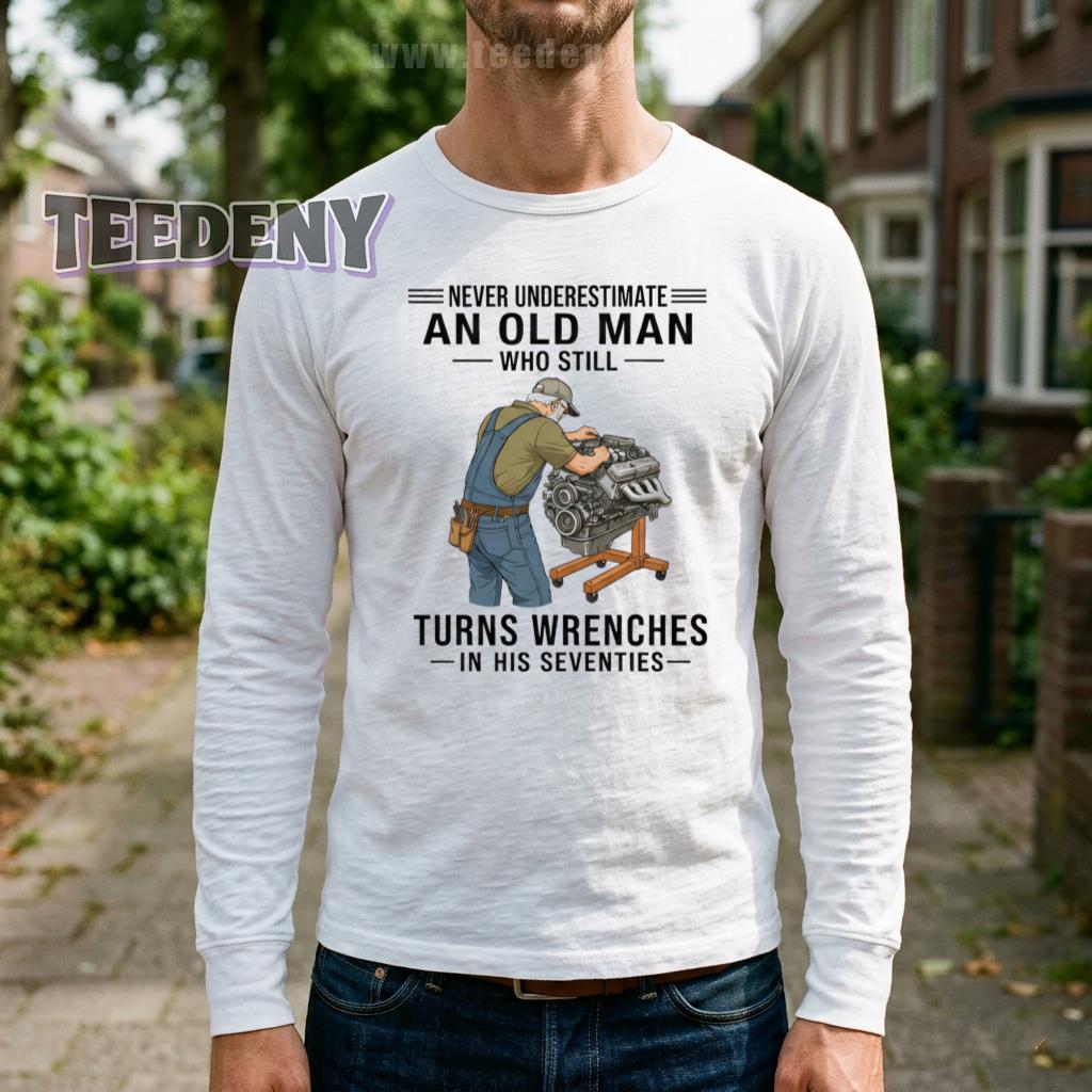 Older men who take pride in their mechanical skills will love this T-shirt that combines humor with nostalgia. This shirt is not just an article of clothing; it’s a celebration of the wisdom and tenacity that comes with time spent turning wrenches. The “Never Underestimate An Old Man Who Still Turns Wrenches In His Seventies Shirt” features a design that resonates with mechanics and anyone who values hands-on work, making a definite statement about the wearer’s character and experience.