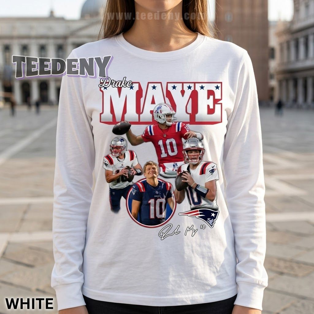 Football enthusiasts who have a penchant for standout style will appreciate this unique shirt. The New England Patriots Drake Maye Graphic Shirt merges the excitement of the game with the vibrant spirit of one of football’s rising stars. Its modern design captures the energy of game days and the passion for the Patriots, making it a standout addition to any fan’s collection.