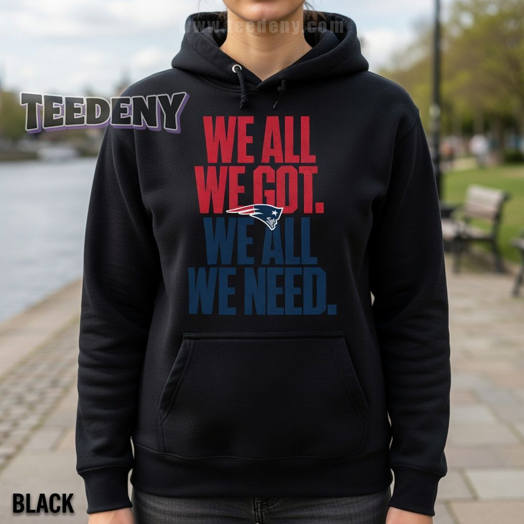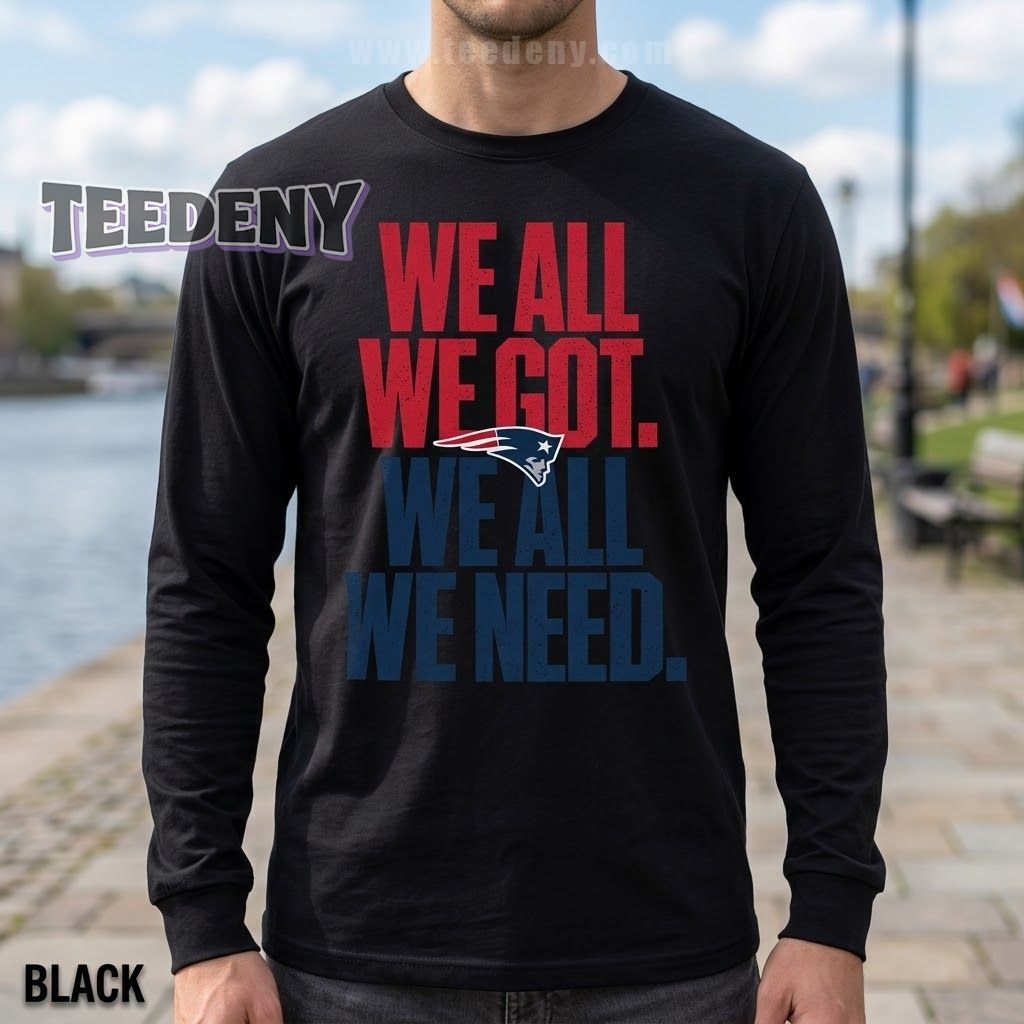 New England Patriots enthusiasts who thrive on camaraderie and team spirit will find their new go-to apparel in this shirt. With its inspiring “We All We Got We Need” slogan, this piece not only showcases your loyalty to the Patriots but also emphasizes the bond among fans. The New England Patriots We All We Got We Need Shirt stands out by blending stylish comfort with a message that resonates deeply during the highs and lows of the season.