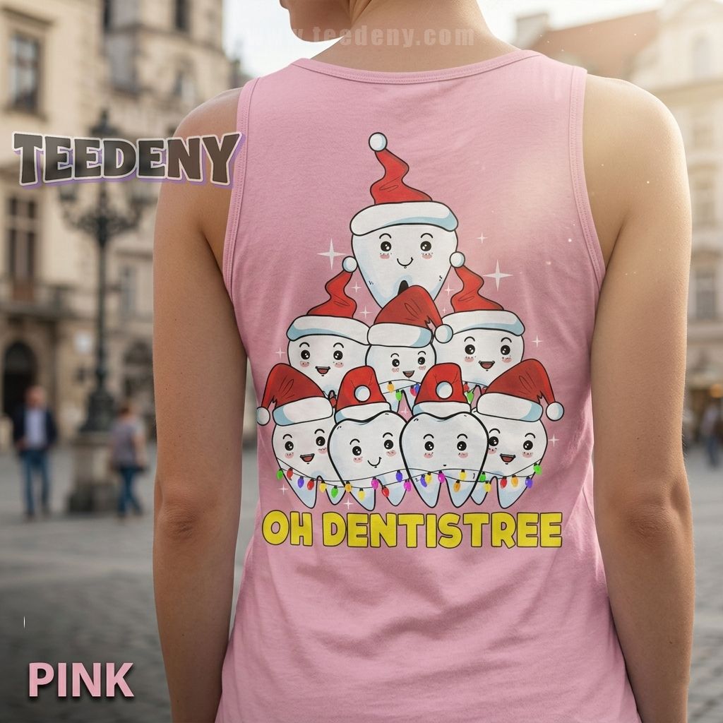 Holiday humor meets dental pride in this Oh Dentistree Funny Christmas Dental Shirt from Teedeny. A cheerful lineup of cartoon teeth stacked like a Christmas tree transforms a classic holiday carol into a clever dental pun. The playful Santa hats and colorful lights add just the right touch of seasonal charm while keeping the design clean and eye catching.