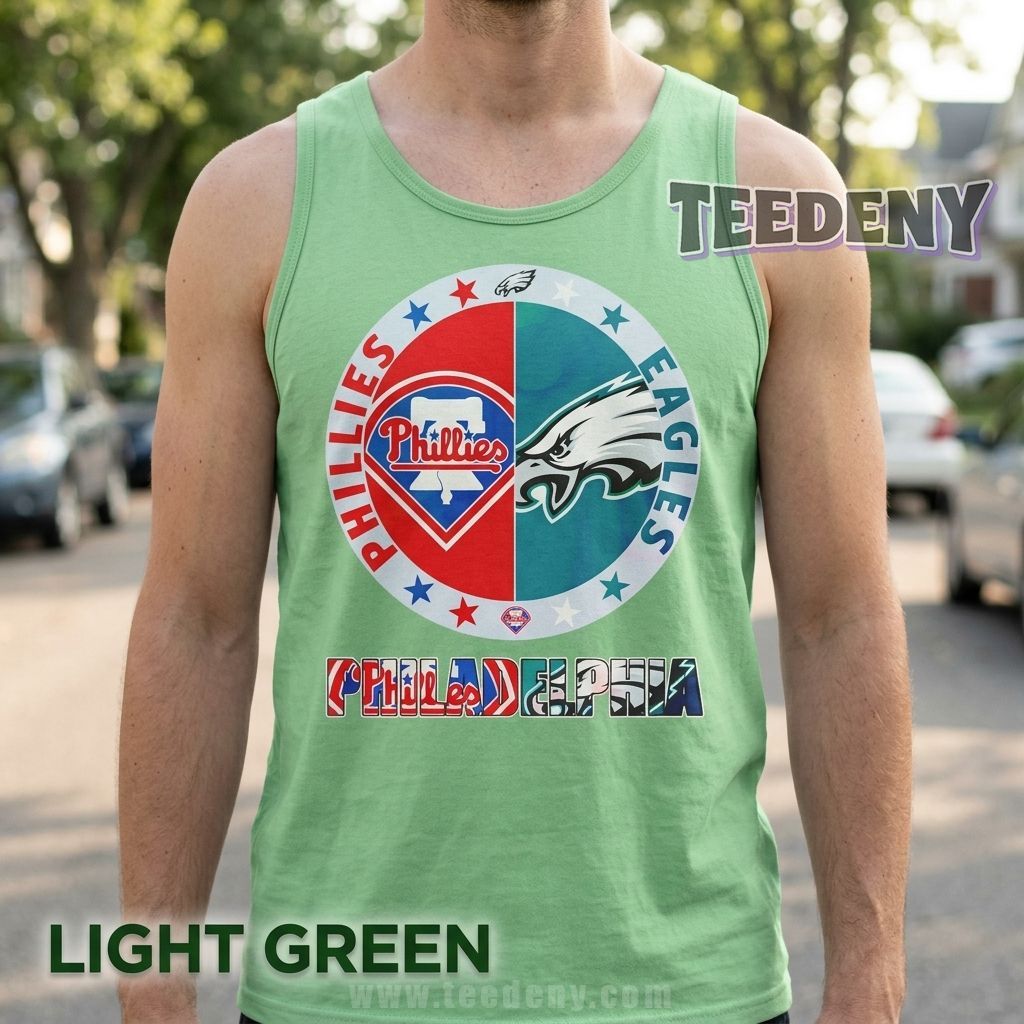 Supporters of Philadelphia sports teams can proudly wear their passion with the Philadelphia Phillies And Philadelphia Eagles Combination Shirt. This T-Shirt seamlessly blends the excitement of baseball with the thrill of football, making it an exceptional choice for those who cheer on both teams. It’s not just a shirt; it’s a statement of loyalty that stands out in any crowd, perfectly capturing the spirit of game day gatherings and sports events.