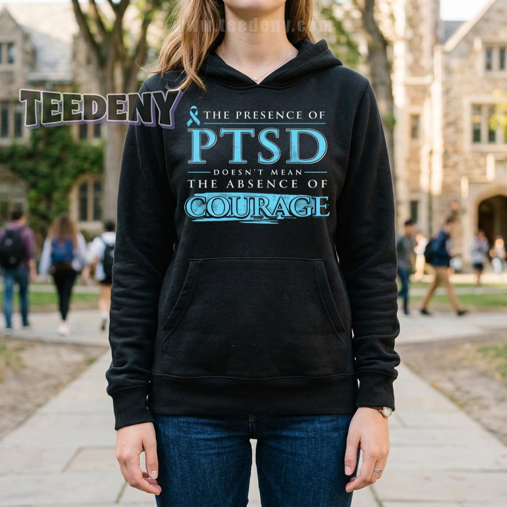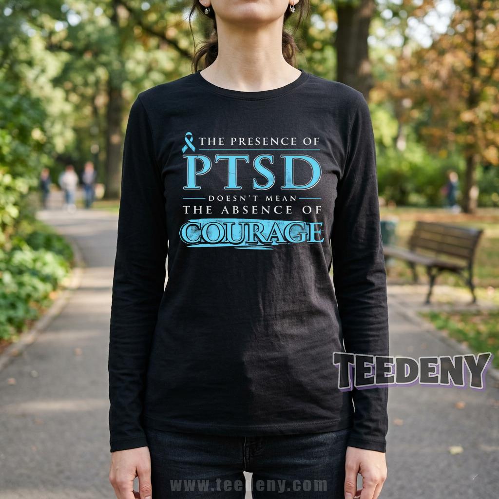 Individuals dedicated to supporting PTSD awareness will appreciate this meaningful shirt that carries an empowering message: “The Presence Of PTSD Doesn’t Mean The Absence Of Courage.” The Courage Quote PTSD Awareness Shirt by Teedeny is designed not just to raise awareness but to spark conversations about strength and resilience, celebrating the courage in facing adversity.