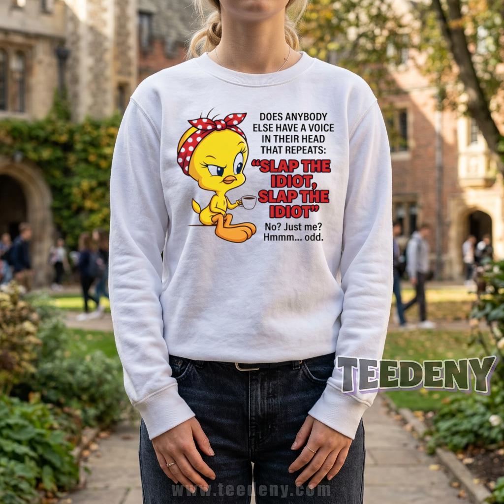 If you’re someone who enjoys a good laugh paired with a dose of sarcasm, this t-shirt is destined to become your new favorite. Designed for adults with a keen sense of wit, the Slap The Idiot Tweety Bird Shirt serves as a playful yet cheeky expression of personality. The blend of classic Tweety Bird charm and humor unites fans of nostalgia with those who appreciate a good punchline, making it a standout in any casual wardrobe.