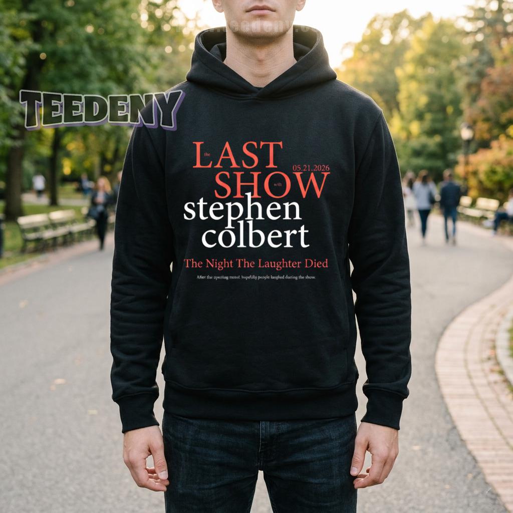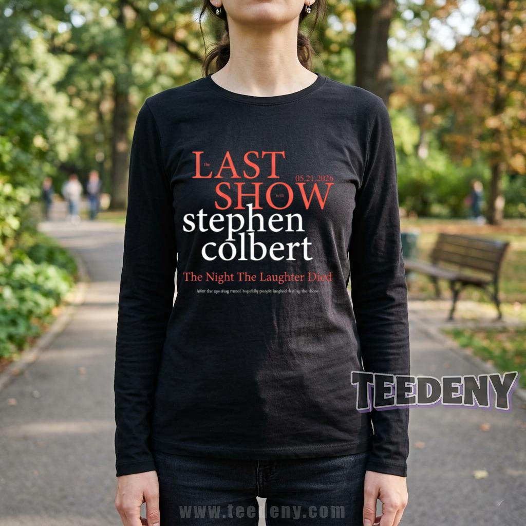 Perfect for casual outings, viewing parties, or simply lounging at home, this shirt suits the dedicated Stephen Colbert enthusiast who wants to honor the legacy of a beloved show. Whether you’re catching up with friends while reminiscing about your favorite episodes or just taking a stroll down memory lane, the “The Night The Laughter Died 05.21.2026 Stephen Colbert Shirt” seamlessly fits into the life of anyone who cherishes a good laugh and an unforgettable experience.