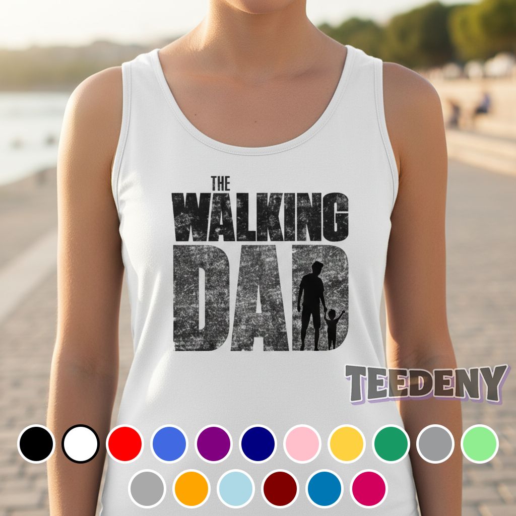 Bringing a playful touch to casual wear, the Walking Dad Father Day Present Shirt stands out with its clever graphic design and laid-back charm. Centered across the front is a humorous illustration that embodies a whimsical dad persona, framed by playful typography that adds a light-hearted tone. The artwork prominently showcases vibrant hues of blue and green, enriched by contrasting accents that elevate the design’s depth. Subtle textures in the graphic invoke a sense of movement, creating an engaging visual interaction with the shirt’s fabric.