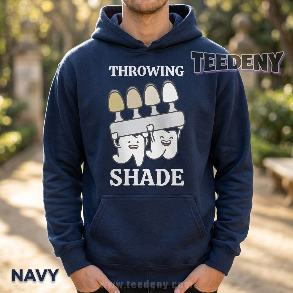 Created with dental assistants in mind, this shirt also resonates with hygienists, dentists, dental students, and anyone who spends their day matching shades and perfecting smiles. The cartoon teeth lifting a shade guide under the bold “Throwing Shade” text adds personality without feeling overdone. It is lighthearted, niche specific, and instantly relatable in a way generic dental tees simply are not.