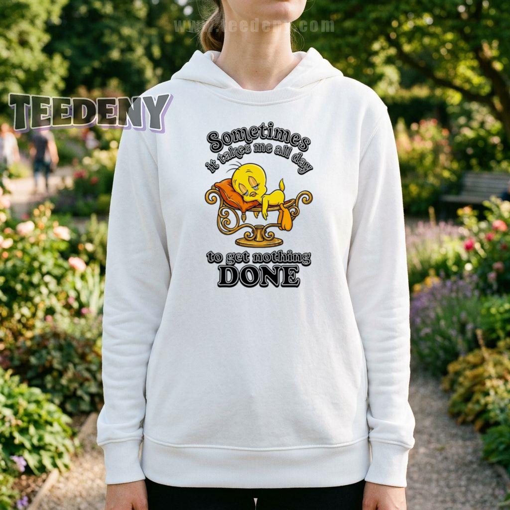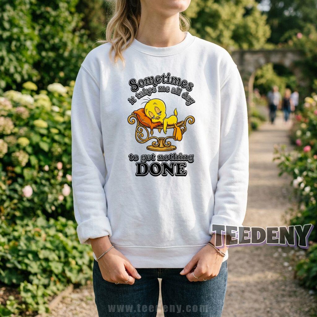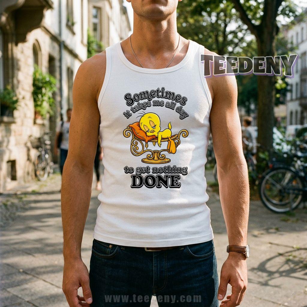 Lovers of relaxation and humor will adore this playful shirt that perfectly captures the essence of taking it easy. The Tweety Sometimes It Takes Me All Day To Get Nothing Done Lazy Shirt isn’t just another addition to your wardrobe; it’s a delightful expression of those lazy days when productivity takes a backseat. With its charming design, this shirt balances a beloved character with a tongue-in-cheek message that resonates with anyone who appreciates a good laugh.